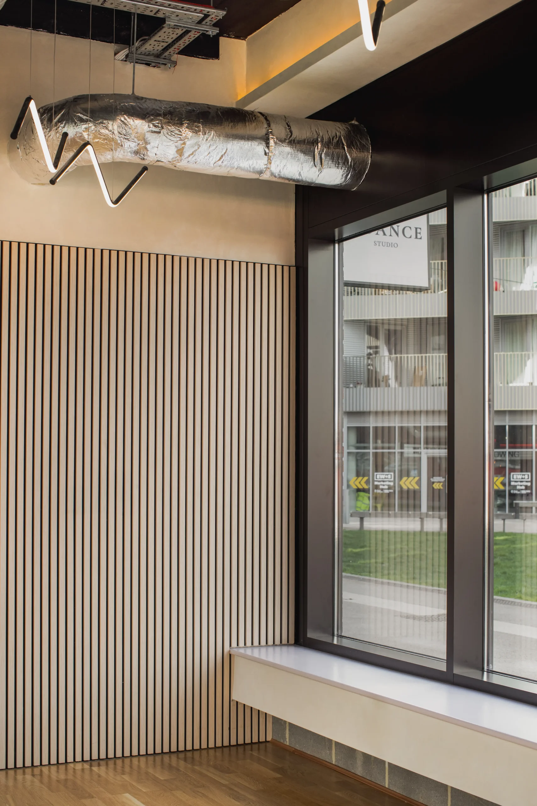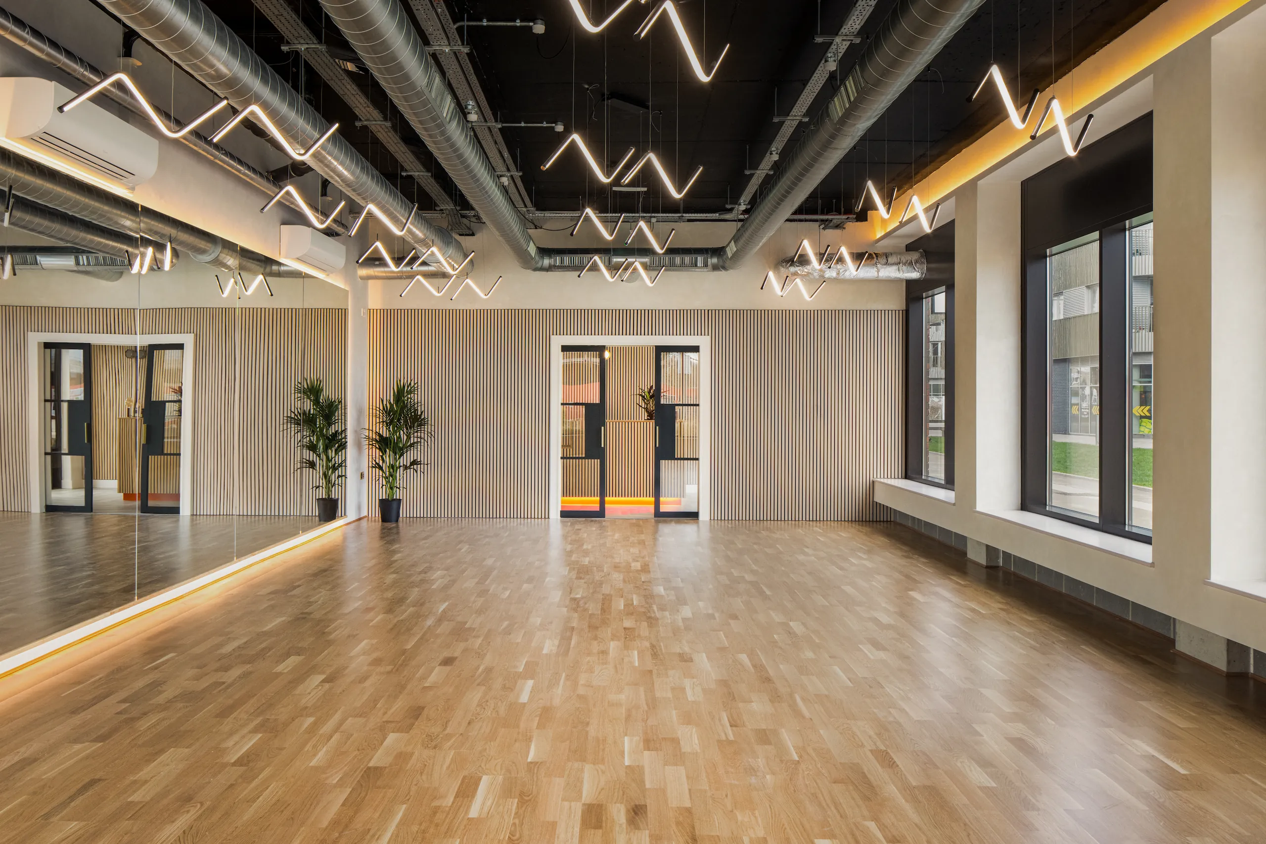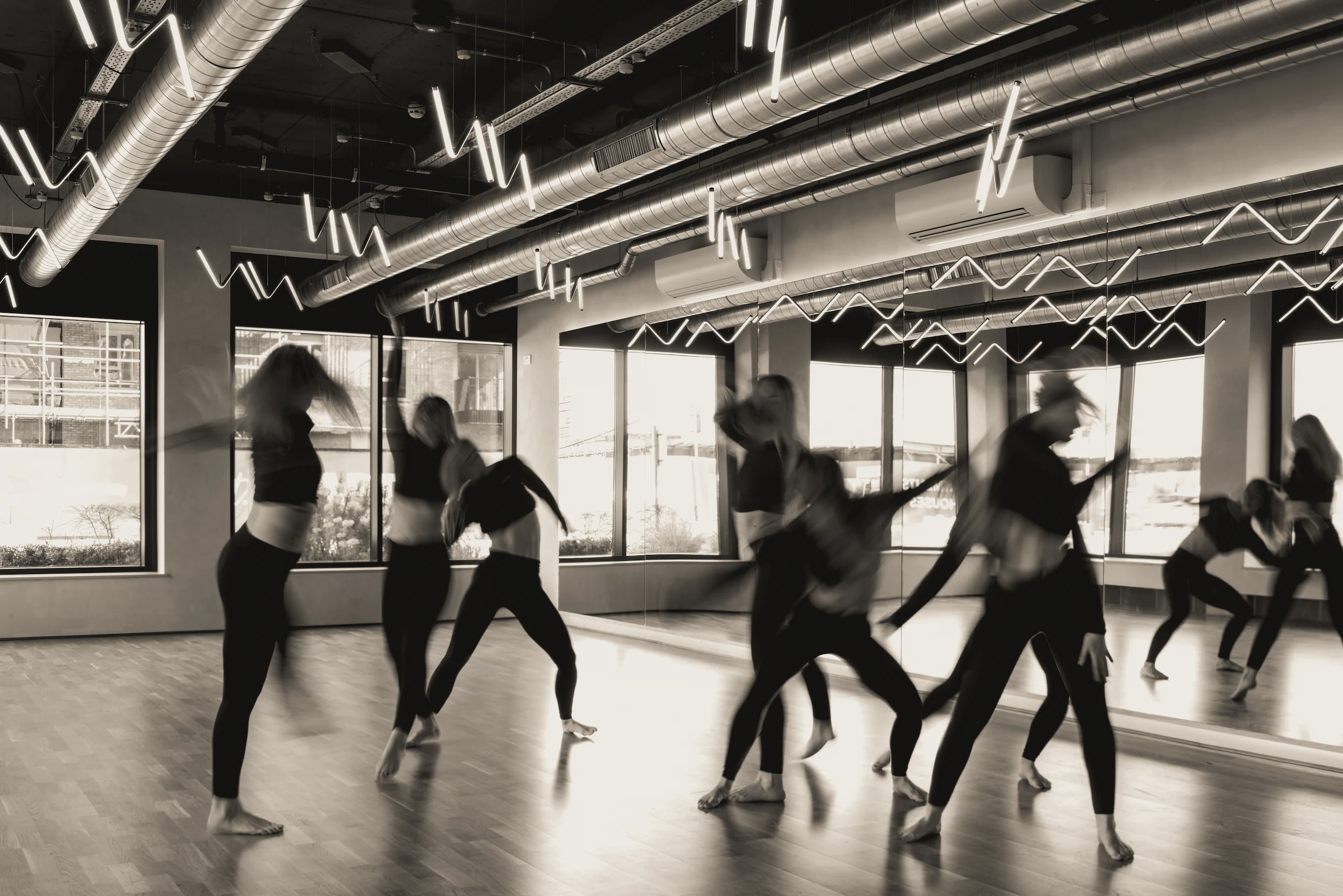 This project transforms an empty shell into a studio built for both movement and care. Alongside open dance spaces, the design incorporates dedicated rooms for therapy and bodywork, reflecting a broader focus on wellbeing within the creative industry. The visual approach centred on light, rhythm and human presence, creating a narrative that shows the studio not just as a place to train, but as a place to restore and reconnect.